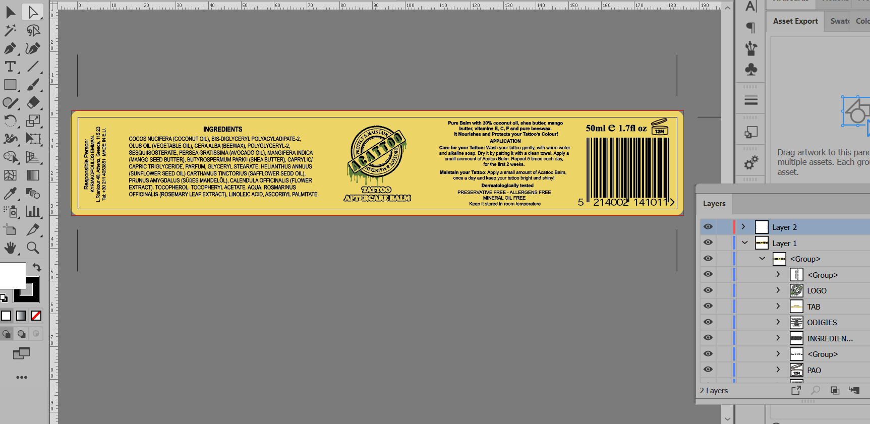 Ξανασχεδίασα την ετικέτα στο illustrator και πρόσθεσα Barcode