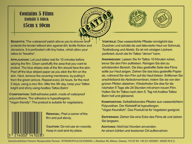 Διπλό κείμενο, στα αγγλικά και γερμανικά, ώστε να μη χρειάζεται να τυπώνουμε 2 διαφορετικές ετικέτες.