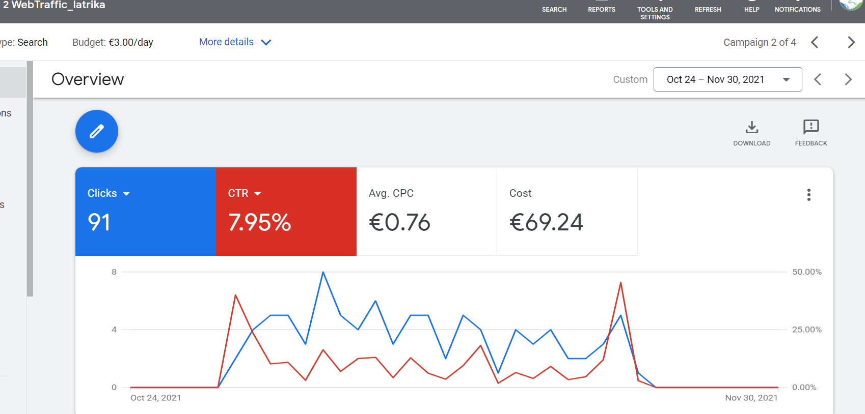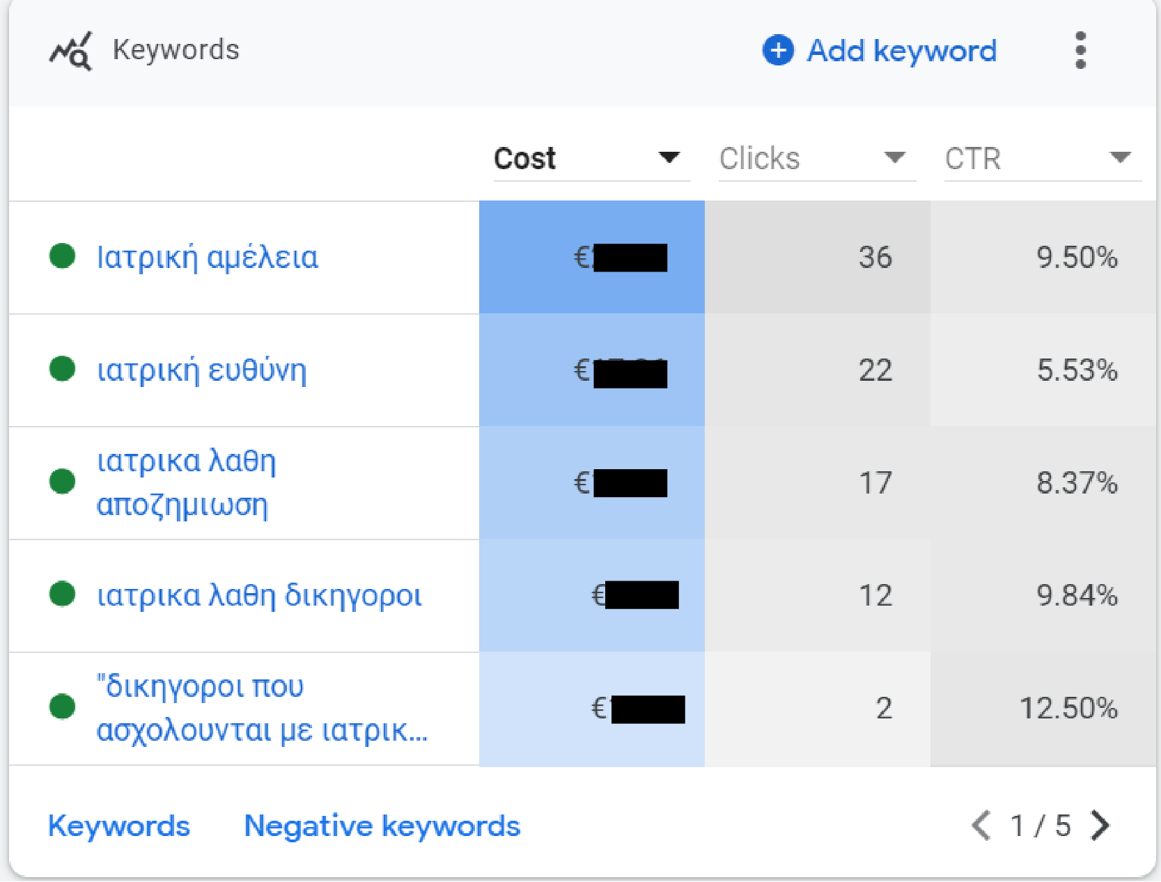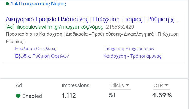 Η κάθε φράση έχει την δική της απόδοση CTR (κλικ ανα 100 views)