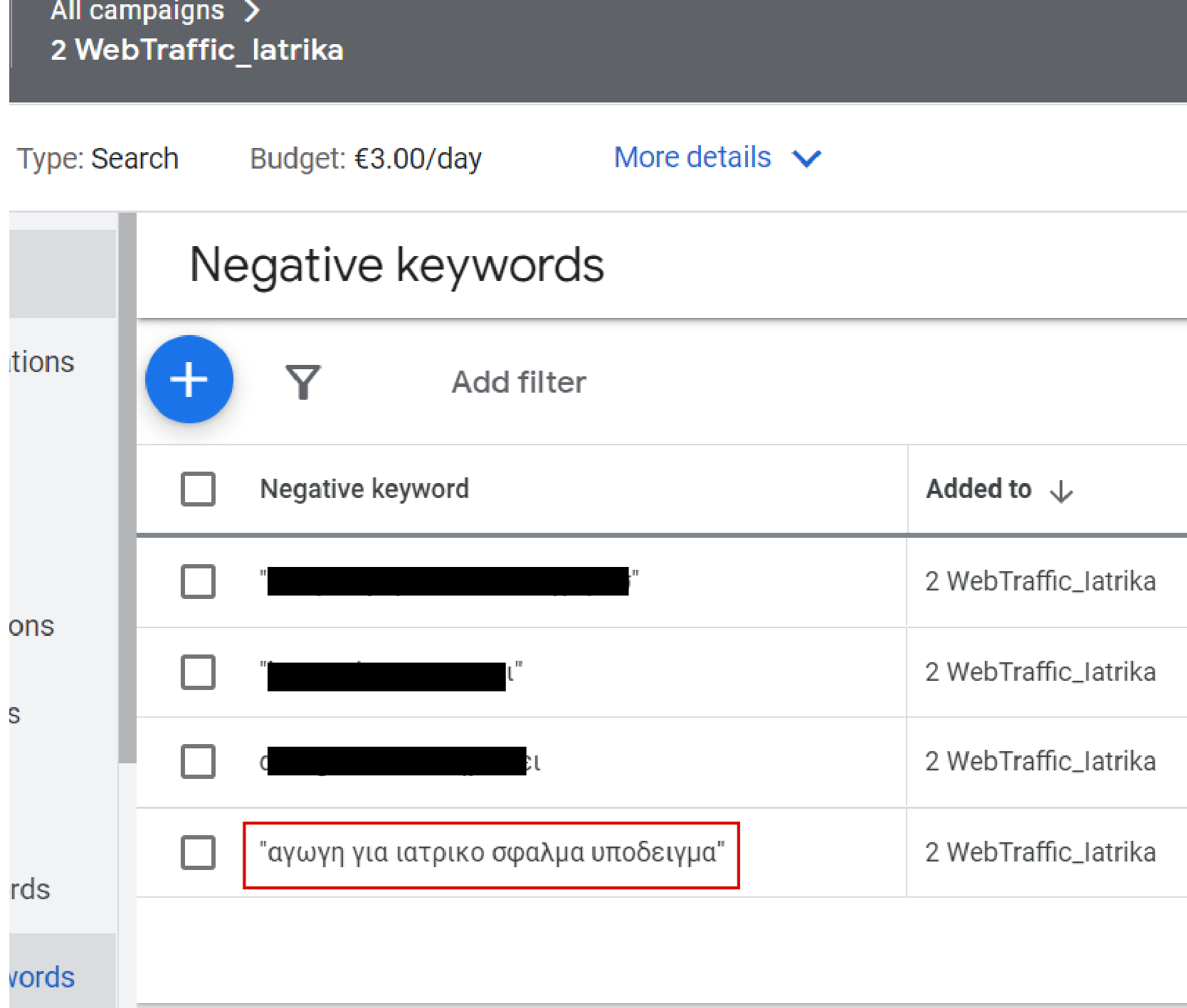 Αντίθετα, απαγορευουμε την διαφήμισή μας να εμφανίζεται για συγκεκριμένες φράσεις ως (Negative Keyword).
